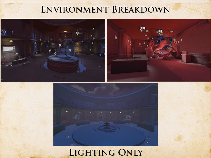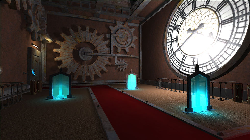 Post-apocalyptic sci-fi environment of an ancient clocktower repurposed as an evil layer that the player must navigate. Created in Unity, Maya, Photoshop, Mudbox.