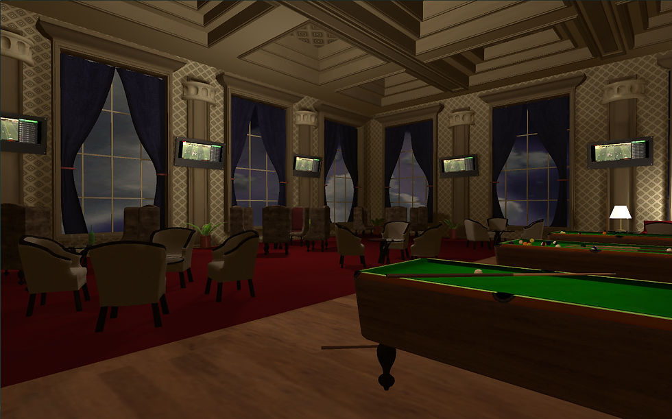 This contemporary casino bar piece was created in Unity, Maya, Photshop, and Mudbox, and is intended for use on a lower performance machine.